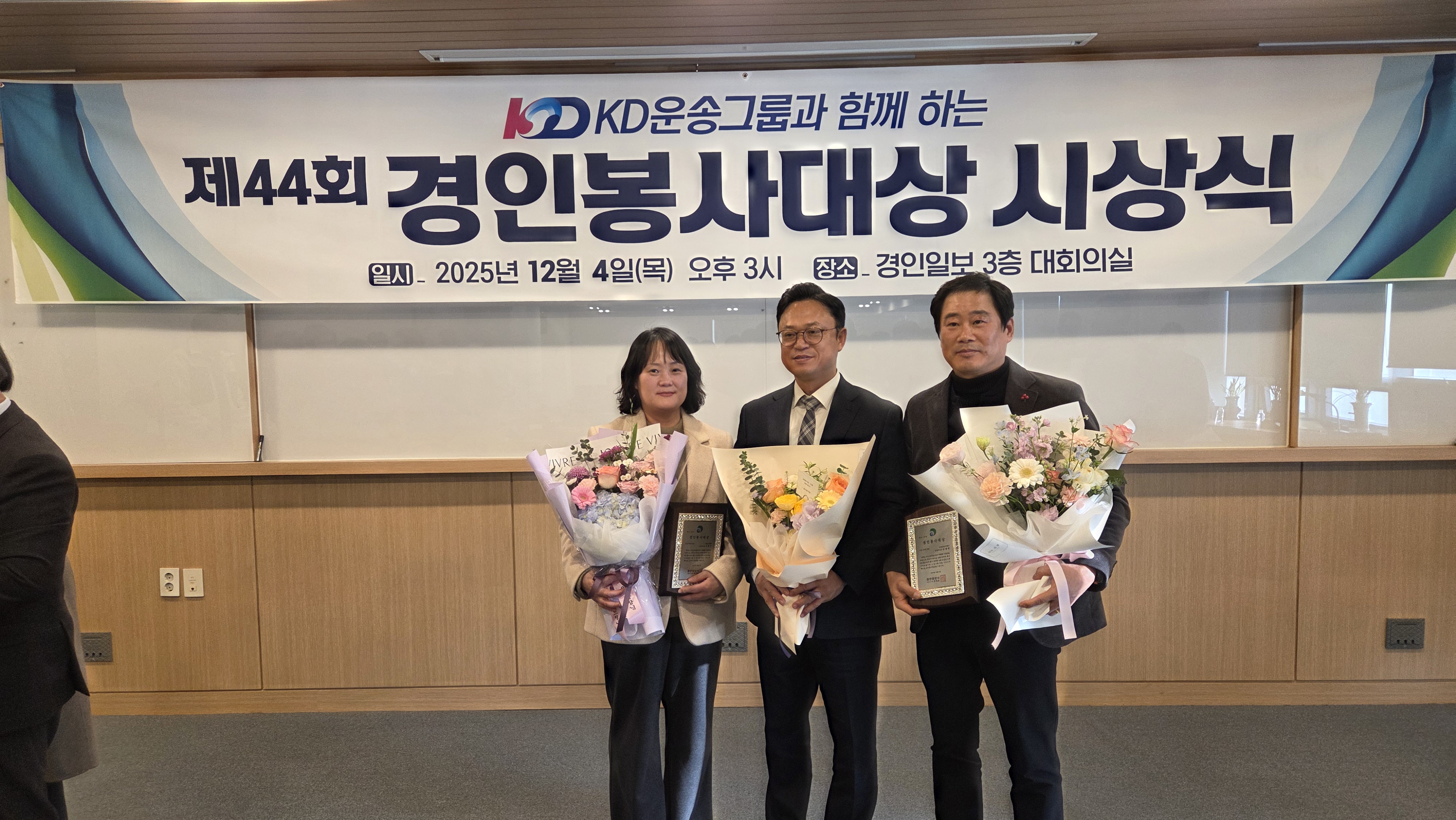경인지방본부(위원장 유익상)는 2025년 12월4일 목요일에 실시한 제44회 경인봉사대상 시상식에 참석하여 우정공무원 부문에서 수상하는 서현주 안양우체국 조합원(현 경인지방본부 여성국장)과 임병연 인천남동우체국 조합원을 격려하고 축하해 주었다.