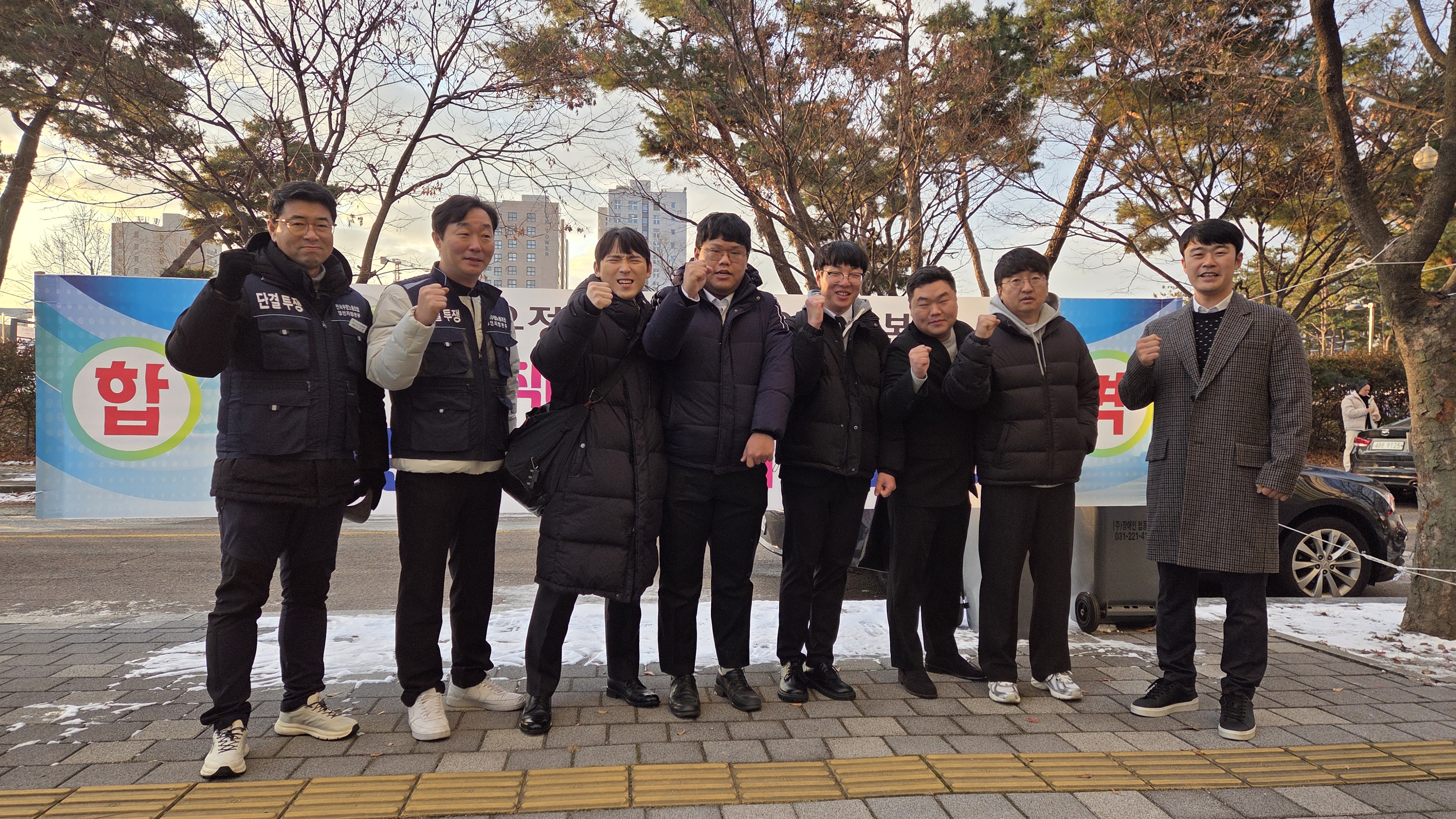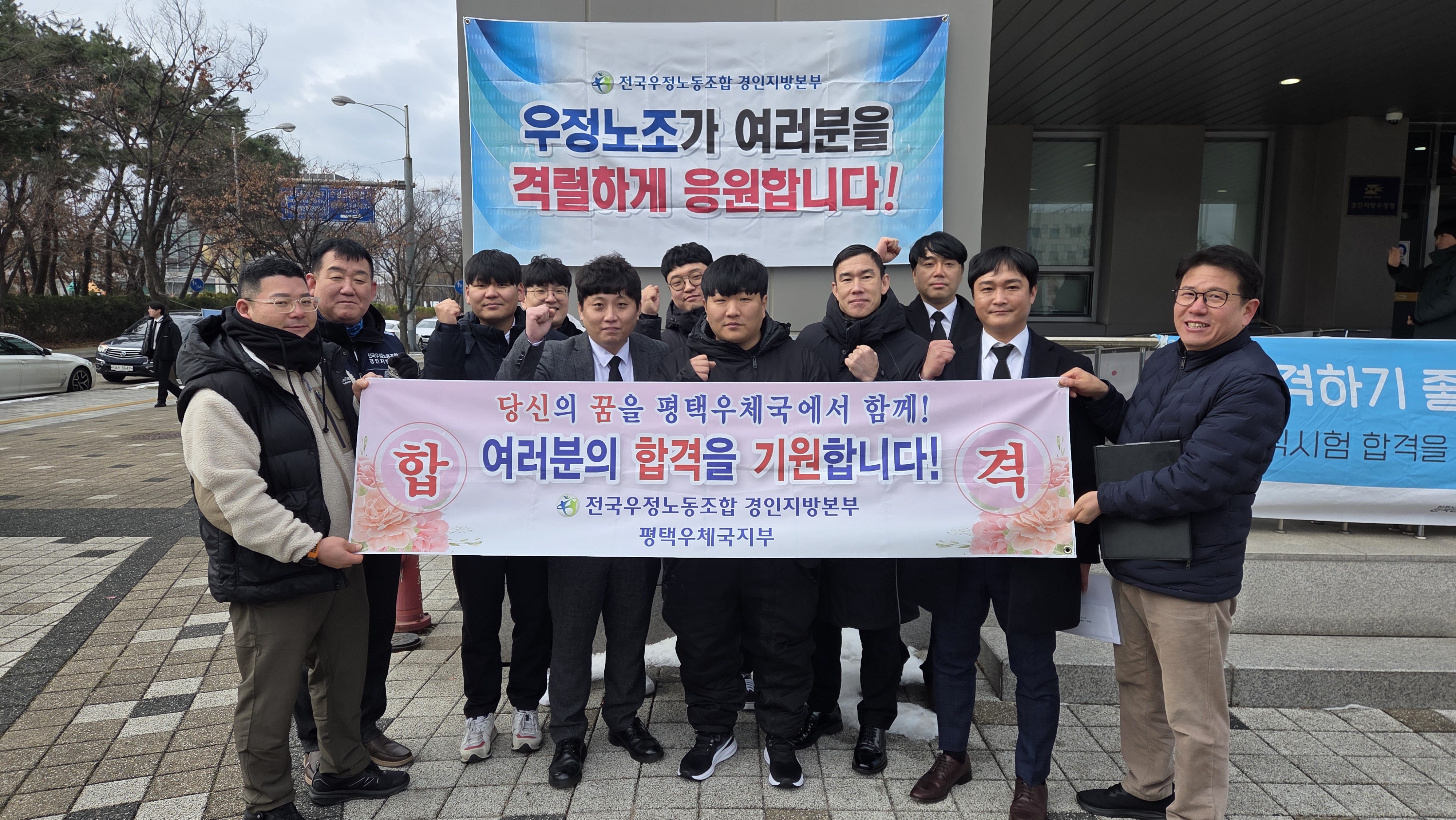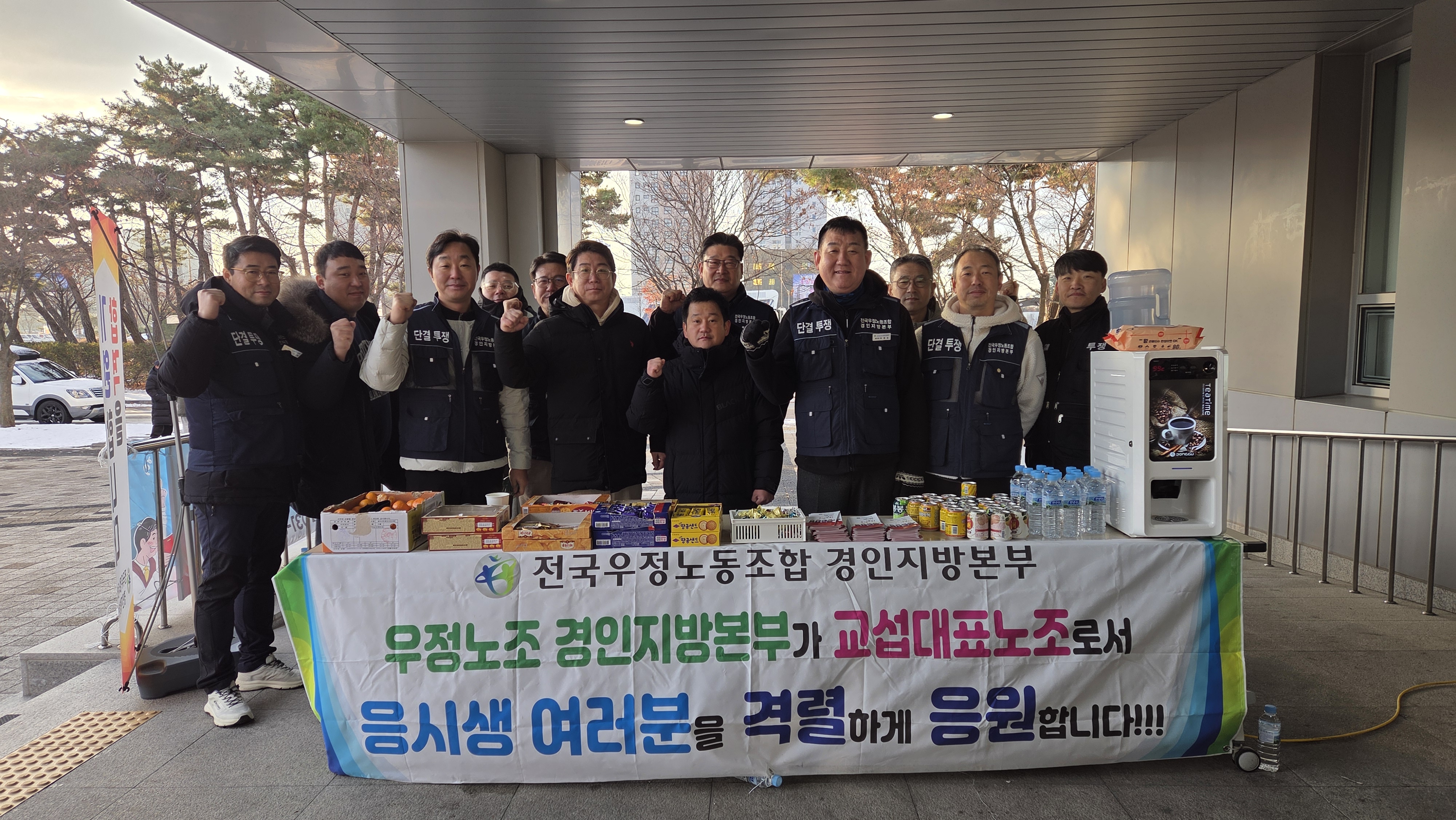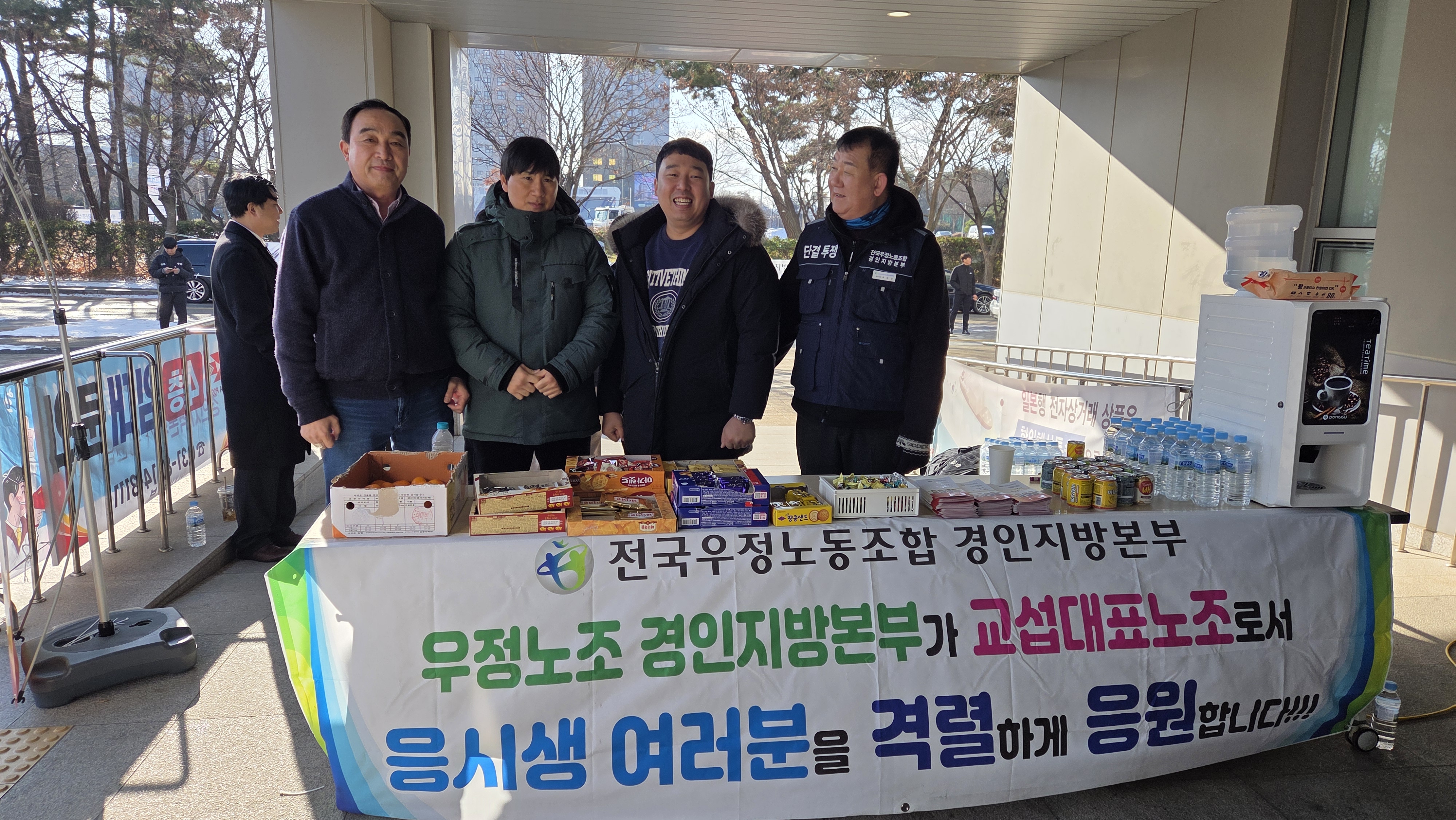 경인지방본부(위원장 유익상)는 2025년 12월6일 토요일에 경인지방우정청에서 실시한 집배공무원 경력채용 면접시험에 응시한 예비조합원을 추운날씨에도 불구하고 이른 아침부터 각 지부의 지부장 및 부서장들과 함께 격려하였다.
