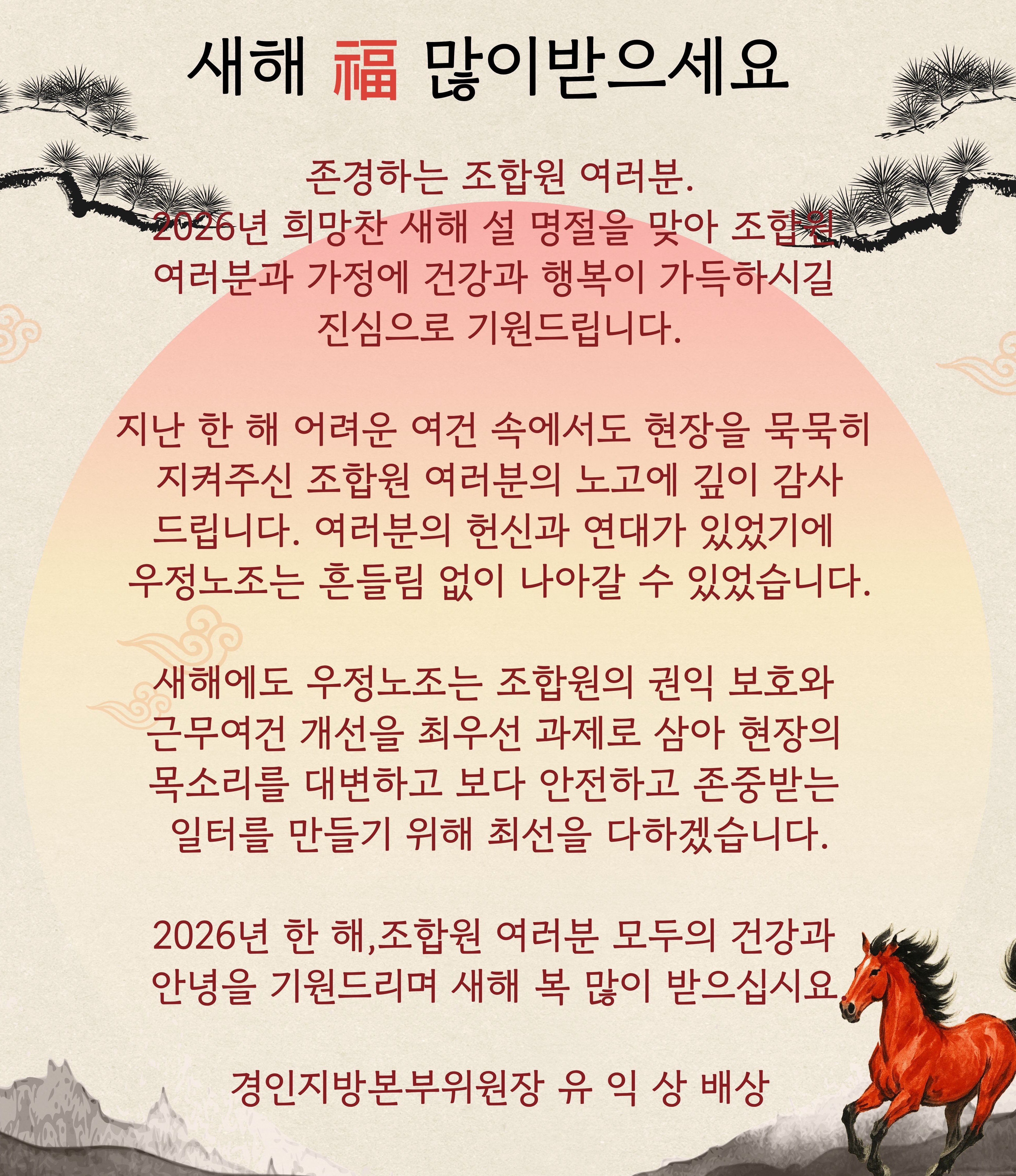 유익상 위원장 2026년도 설 명절 인사